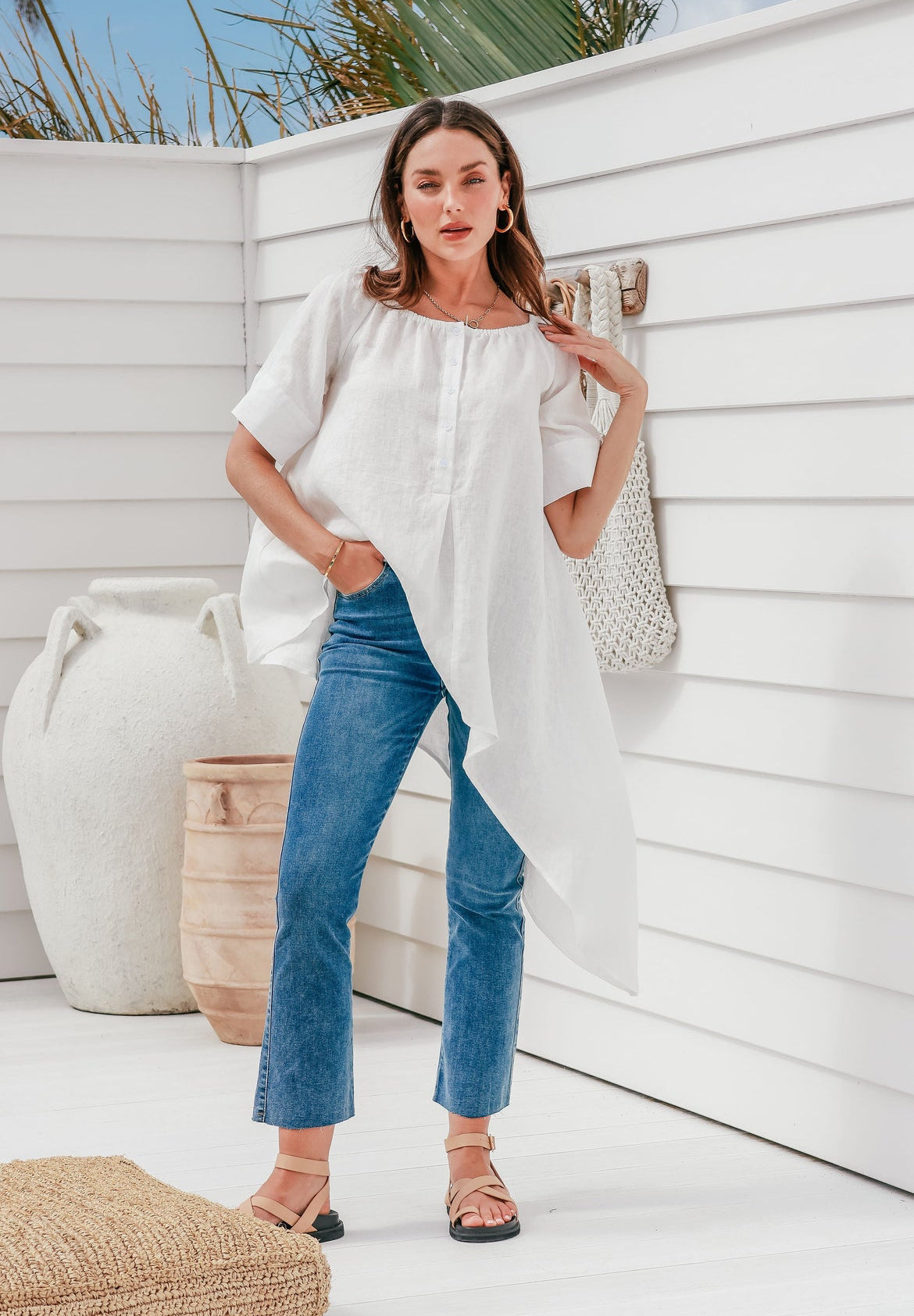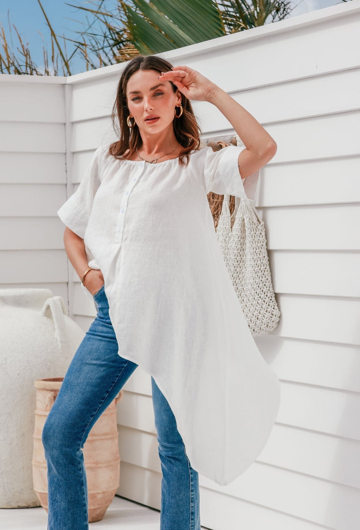 The LEE LEE Linen shirt is a must-have for any wardrobe. With its off-shoulder design and 100% linen material, this white shirt is both stylish and comfortable. The bottom cut in an A-line adds a touch of elegance to this everyday essential.